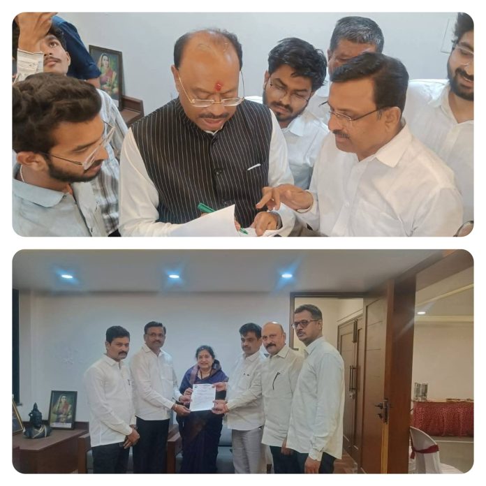 हे निवेदन दि. अमरावती जिल्हा मध्यवर्ती सहकारी बँक लि. अमरावतीचे उपाध्यक्ष श्री. अभिजीत ढेपे, संचालिका सौ. सुरेखाताई ठाकरे व संचालक श्री. अजय मेहकरे यांच्या उपस्थितीत सादर करण्यात आले.
