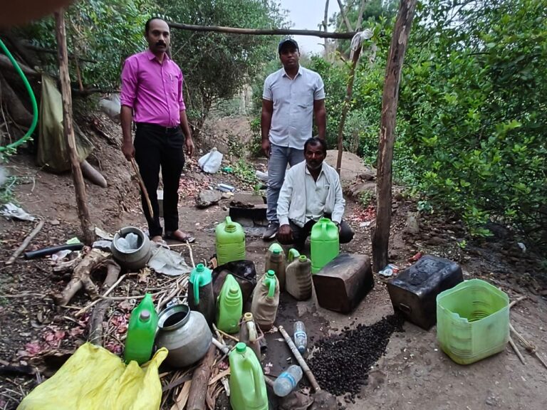जळगाव जामोद: तालुक्यातील भेंडवळ येथील महिलांनी एकत्र येत गावामध्ये अवैध धंदे तसेच अवैध दारू विक्री बंद व्हावी यासाठी ग्रामसभेचा ठराव घेण्यात आला होता व गावातील अवैध धंदे यासह दारू विक्री बंदची तक्रार व निवेदन जळगाव पोलीस स्टेशनला महिलांनी मिळून दिले होते. पोलिसांनी निवेदनाची दखल घेउन गावामधील अवैध धंदे बंद केले होते.अशातच पोलिसांना गुप्त माहिती मिळाली की भेंडवळ बुद्रुक शेत शिवारातील एका शेतामध्ये गावठी हातभट्टीची दारू विक्रीच्या उद्देशाने तयार करत आहे. अशा माहितीवरून पोलीस नाईक इरफान शेख,पोलीस कॉन्स्टेबल प्रफुल्ल डब्बे व पोलीस कॉन्स्टेबल संदीप रिंढे यांनी घटनास्थळ गाठून रेड केली असता आरोपी रामेश्वर राजाराम जाधव वय ४९ वर्ष यास रंगेहाथ पकडले यावेळी त्याच्या ताब्यातून रामेश्वर राजाराम जाधव यांच्या शेतामध्ये मिळाला माल 1) तिन लोखंडी टिपे प्रतेकी 15 लिटर प्रमाणे ज्यामध्ये 45 लिटर मोह सडवा किमती प्रती लिटर 50 रु प्रमाणे 2250 रु. चा दोन प्लास्टीक कॅन प्रतेकी 15 लिटर प्रमाणे ज्यामध्ये 30 लिटर हा म दारु प्रती लिटर 100 रु दरा प्रमाणे 3000 रु.ची 3) आत 5 लिटरच्या प्लास्टीक कॅन ज्या मध्ये 40 लिटर हा भ दास कि 4000 रु 4) तिन लोखंडी टिपे कि 150 रु 5) दोन 15 लिटर च्या प्लास्टीक कॅन कि 100 रु 6) आठ 5 लिटर च्या प्लास्टीक कॅन कि 160 रु चा असा एकुन 9660/- रु चा माल स्थानिक पोलिसांच्या मदतीने छापा टाकून एकावरती कारवाई केली. भेंडवळ बु शेती शिवारामध्ये अवैध गावठी हातभट्टीची दारू रामेश्वर राजाराम जाधव हे शेतामध्ये गावठी हातभट्टीची व्यवसाय करीत आहे , अशी माहिती जळगाव नपोका पोलीस शेख इरफान यांना माहिती मिळाली होती. पोलीस निरीक्षक श्रीकांत निचळ आदेशान्वये यांचे पथक गठीत करून भेंडवळ बु गावाला लागून असलेले शेतीमध्ये हातभट्टीची व्यवसाय दाखल झाले. गावातील रामेश्वर राजाराम जाधव हे अवैध गावठी दारू स्वतःच्या शेतामध्ये हातभट्टी लावून विक्री करण्याच्या उद्देशाने बाळगून असल्याचे आढळून आले. त्यामुळे रामेश्वर राजाराम जाधव यांना ताब्यात घेत त्यांच्याकडून 9660 रुपयाचा पोव्ही माल गावठी हातभट्टीची दारू जप्त करण्यात आली. पण बाकी अवैध धंद्याचे काय ते खरच बंद झालेत का ? असा सवाल नागरिक व महिला विचारात आहे