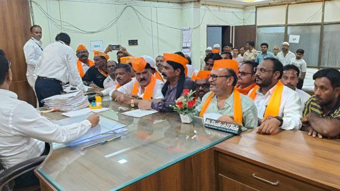 उपविभागीय अधिकारी शैलेश काळे यांना निवेदन देतांना उबाठा जिल्हा प्रमुख गजानन वाघ, सहसंपर्क प्रमुख दत्ता पाटील, तालुका प्रमुख संतोष दांडगे व पदाधिकारी, कार्यकर्ते.