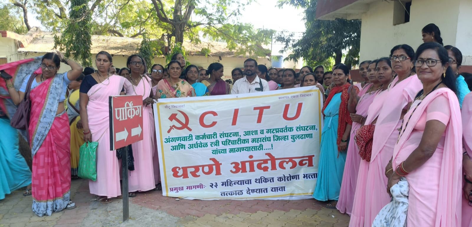 सिटु च्या वतीने जिल्हाध्यक्ष कॉम्रेड पंजाबराव गायकवाड यांच्या नेतृत्वातअंगणवाडी कर्मचारी संघटना, आशा व गटप्रवर्तक संघटना आणि अर्धवेळ स्त्री परिचारिका महासंघ जिल्हा बुलढाणाच्या वतीने ९ जानेवारी रोजी येथील तहसील आणि पंचायत समिती कार्यालयात एक दिवसीय धरणे आंदोलन करण्यात आले होते.