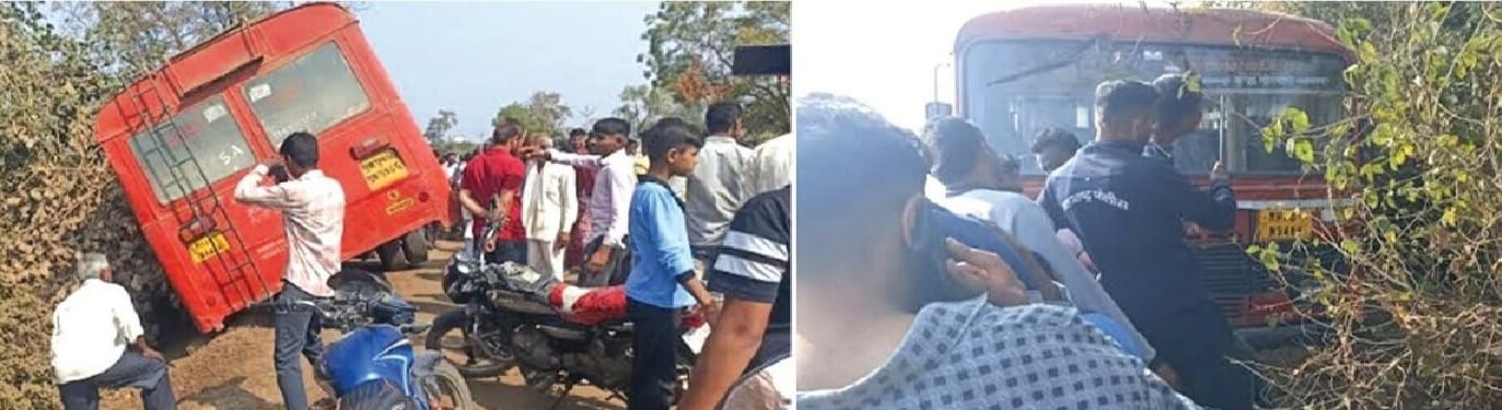 सदर बस गोतमारा येथून मलकापूरकडे परत घेवून येत होते. मात्र, सध्या या मार्गावर रस्त्याच्या रुंदीकरणाचे एका बाजुचे काम सुरु असल्याने दुसऱ्या बाजुने वाहतूक वळविण्यात आली होती. या रस्त्यावर टाकण्यात आलेल्या मातीचा भरावा व अरुंद रस्ता असल्याने समोरुन येणाऱ्या वाहनाला साईड देतांना चालक सुरडकर यांना अंदाज न आल्याने त्यांचे बसवरील नियंत्रण सुटल्याने बस रस्त्याच्या बाजुच्या खोल चरीत उतरल्याने प्रवाशांमध्ये एकच खळबळ उडाली. चालकाने प्रसंगावधान राखल्यामुळे पुढील अनर्थ टळला.