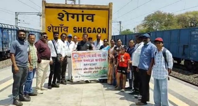 नांदुरा प्रतिनिधी शुभम ढवळे : वाढत्या उन्हाळ्याच्या पार्श्वभूमीवर प्रवाशांना दिलासा देण्यासाठी राष्ट्रीय रेल्वे यात्री संघ सोशल वेल्फेअर फाउंडेशनच्या वतीने शेगाव रेल्वे स्टेशनवर थंड पाणी, बिस्कीट व शरबत वाटपाचा स्तुत्य उपक्रम राबविण्यात आला.रविवार, १३ एप्रिल २०२६ रोजी दुपारी शेगाव प्लॅटफॉर्म क्रमांक २ वर हा कार्यक्रम पार पडला प्रवाशांना या उपक्रमाचा लाभ देण्यात आला. उन्हाच्या तीव्रतेमुळे त्रस्त झालेल्या प्रवाशांना या उपक्रमामुळे मोठा दिलासा मिळाला.